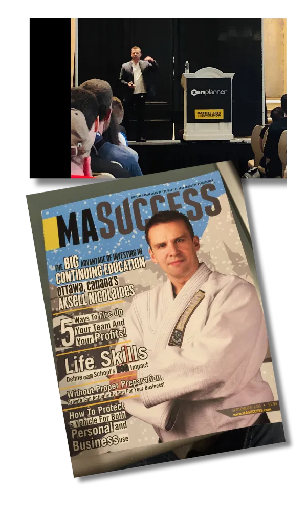 He has been invited multiple times to speak at the Martial Arts SuperShow in Las Vegas — the largest martial arts business event in the world — and has been featured in leading industry publications, including a cover feature in MA Success magazine.